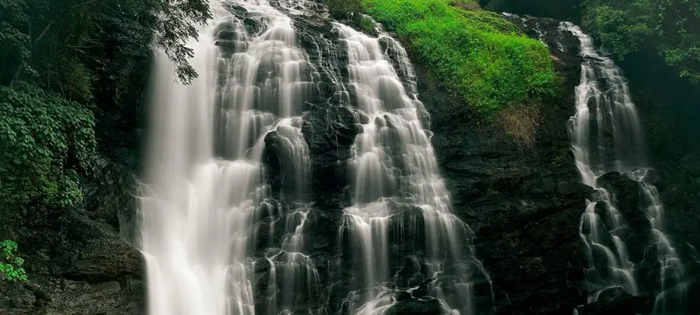 Abbey Falls : Known as the 'pride of Coorg', this waterfall showcases water cascading down from a height of 70 feet, providing a spectacular view. The walk to the falls from the main entrance has around 200 steps downwards and goes through exotic plantations of coffee, cardamom, pepper and other spices.