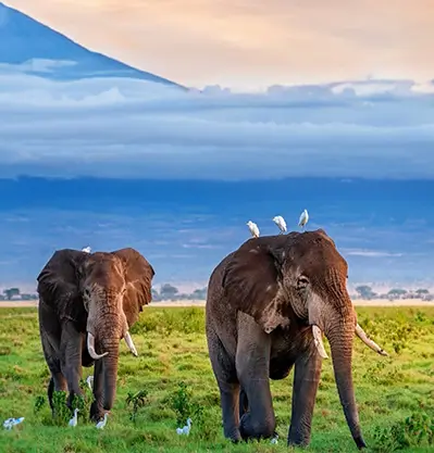 Amboseli National Park : This park not only gives a taste of its wildlife but also offers diverse scenic landscapes, from arid plains to lush swamps, and soak in views of the great Mount Kilimanjaro. Here you can spot a wide range of animals, including elephants, lions, cheetahs, leopards, wildebeest, zebras, impalas, Grant's gazelles, hippos, and crocodiles.