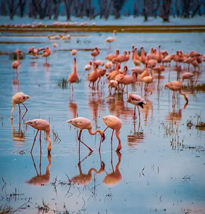 Lake Nakuru National Park : This is the top camping destination in Kenya. Campers can enjoy the park's unique vegetation, semi-humid weather and a chance to see animals up close. It is home to the big 5 animals, as well as pink flamingos and pelicans. You can also sport black rhinos in the protected part of the park.