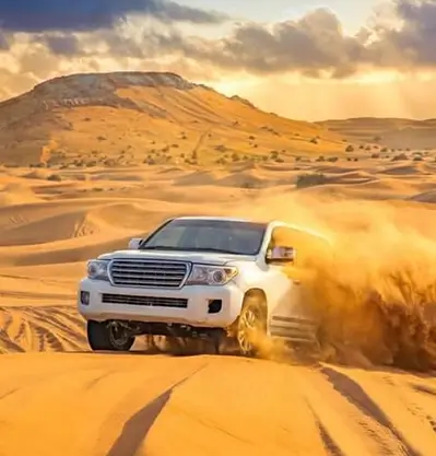 Desert Safari (Sand Dunes) : Tour the desert with your choice of vehicle - the good old camel, an exciting quad bike, sandboarding or the safari cars. Enjoy a lovely meal in the desert camp, with a live belly dance show.
